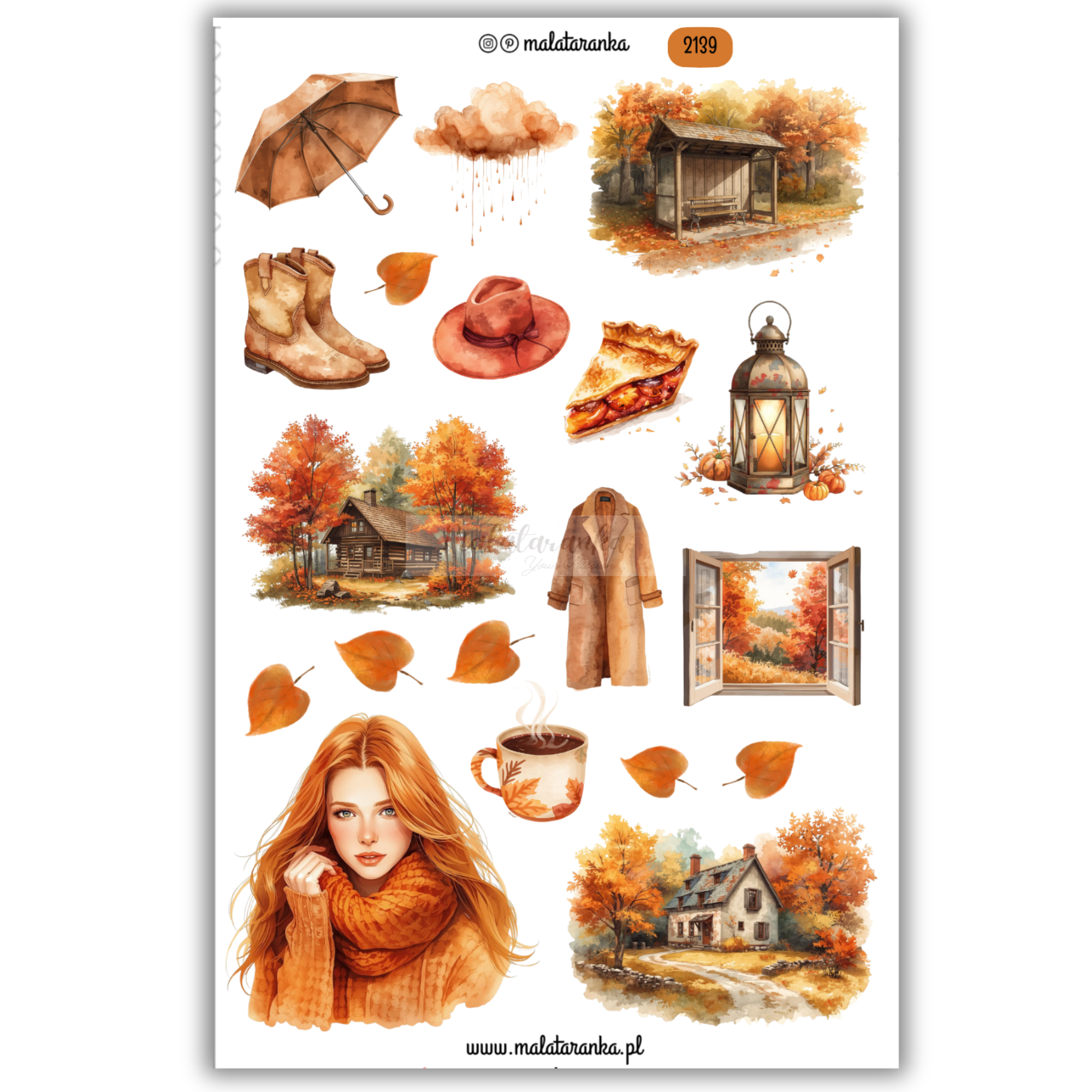 Arkusz naklejek jesiennych - journaling scrapbooking planner
