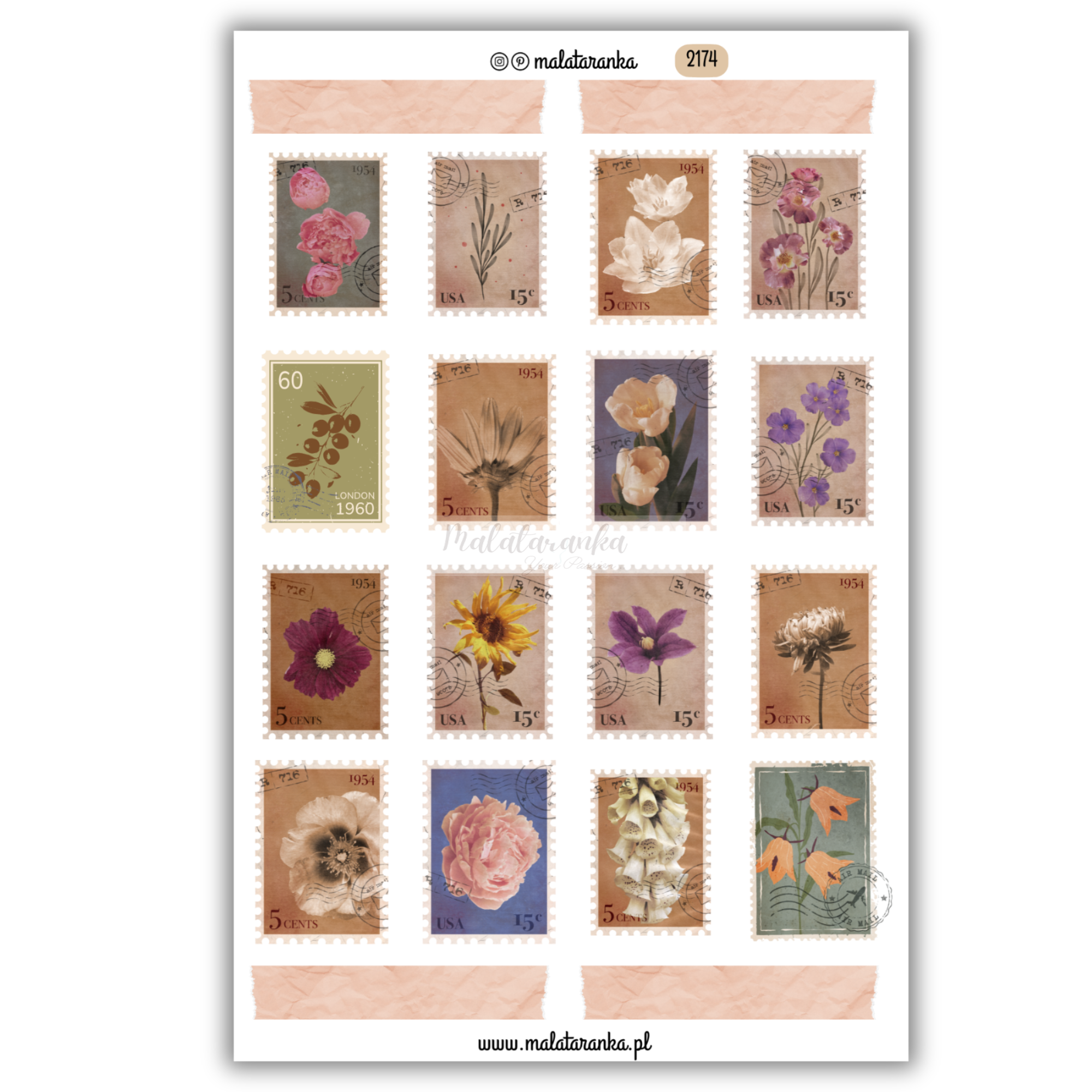 Arkusz naklejek stare znaczki pocztowe poczta ślimakowa dziennik journal