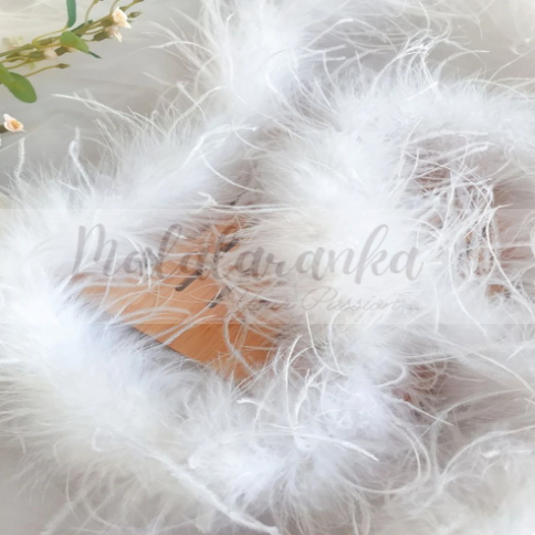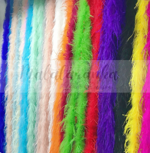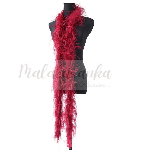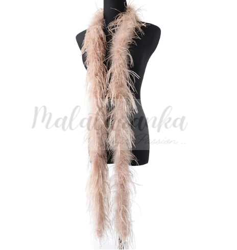 Boa wykonane jest z prawdziwych piór strusia, najlepszej jakości. Połączenie piórek z największą ilością mięciutkiego puchu z piórkami dłuższymi, gładkimi i luźnymi, nadaje Boa „kudłaty” wygląd.