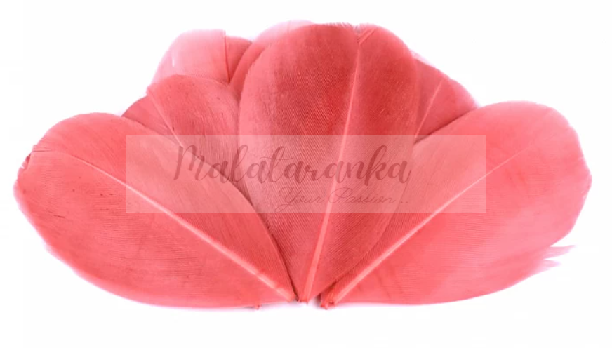 Czubki gęsich piór 5-7 cm KORALOWE 10szt