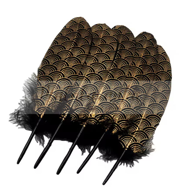 Pióra gęsi lotki 13-18 cm CZARNO ZŁOTE 10 szt