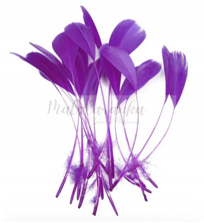 Pióra gęsie trymowane 13-18 cm FIOLETOWE 10 szt