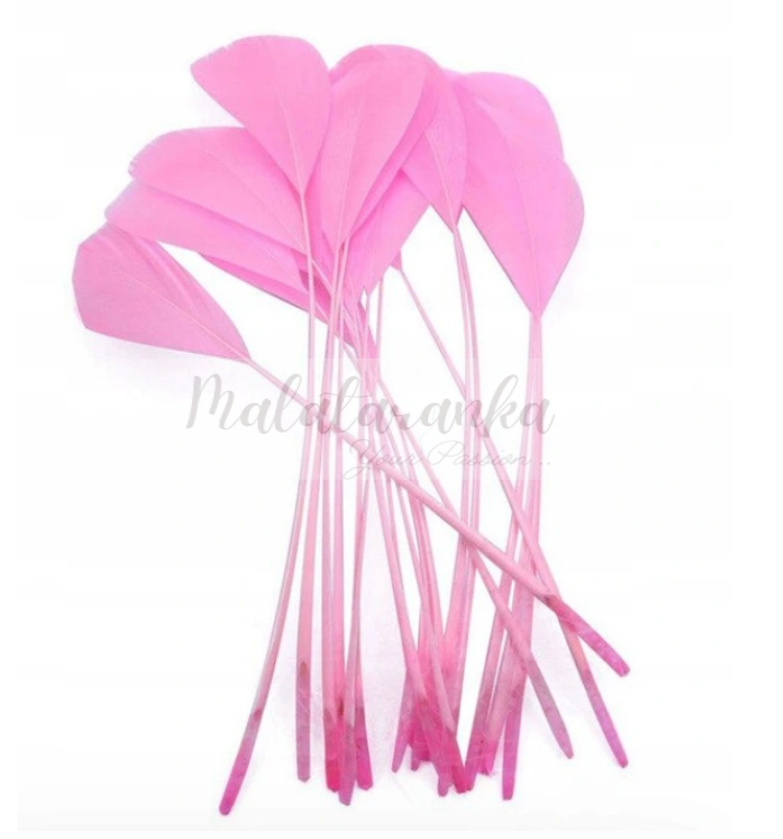 Pióra gęsie trymowane 13-18 cm JASNO RÓŻOWE 10 szt