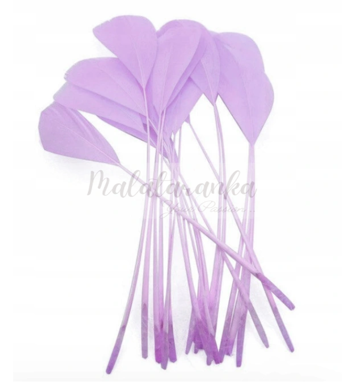 Pióra gęsie trymowane 13-18 cm LAWENDOWE 10 szt