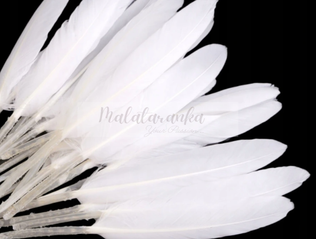 Piękne pióra kacze, lotka. Idealne do zdobienia przedmiotów, ubrań, kapeluszy, kostiumów. Używane do wykonywania biżuterii, łapaczy snów, Świetnie sprawdzają się jako element dekoracji sal weselnych, stołów, wiązanek ślubnych, prezentów, dekoracji samochodów, choinki, stołów wigilijnych, witryn sklepowych.