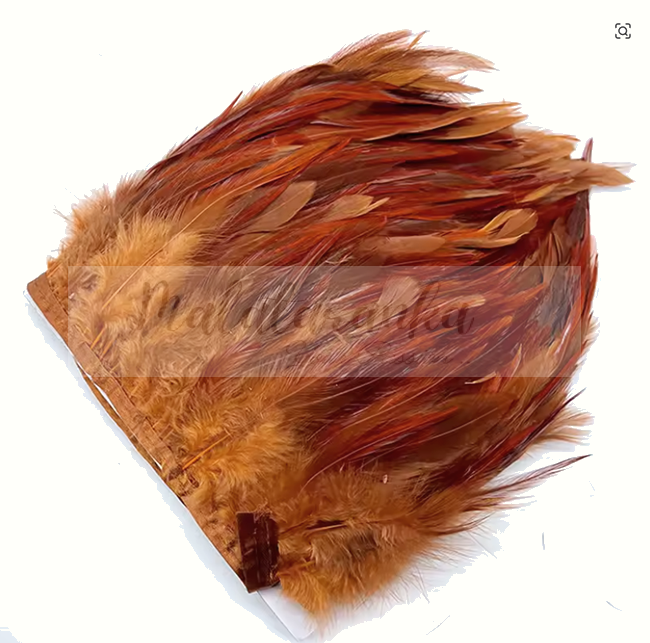 Pióra na taśmie kogut BRĄZOWY MIEDZIANY 1m taśma z piór