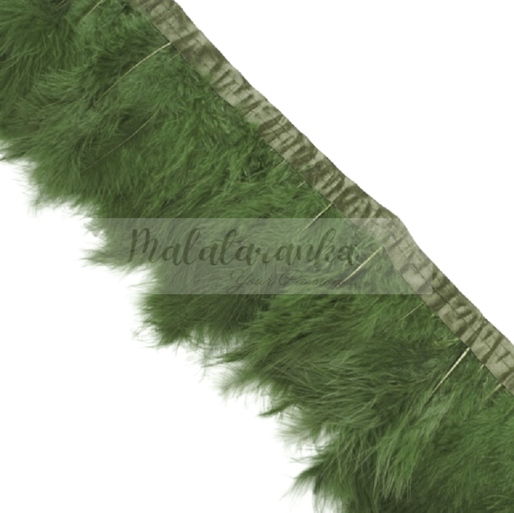 Pióra na taśmie marabut OLIWKOWE 1m puszyste